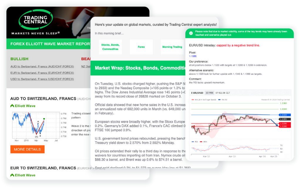 Configure alerts for your preferred assets and download the MT5 plugin to seamlessly apply Trading Central signals live on your charts.